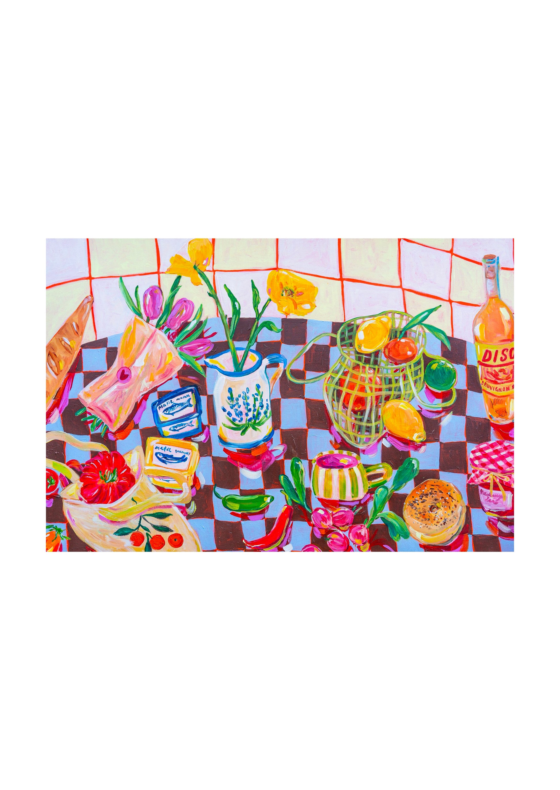 ‘Market Haul’ fine art print from the June 2025 ‘Set the Table’ collection. Available in sizes A5–A2.