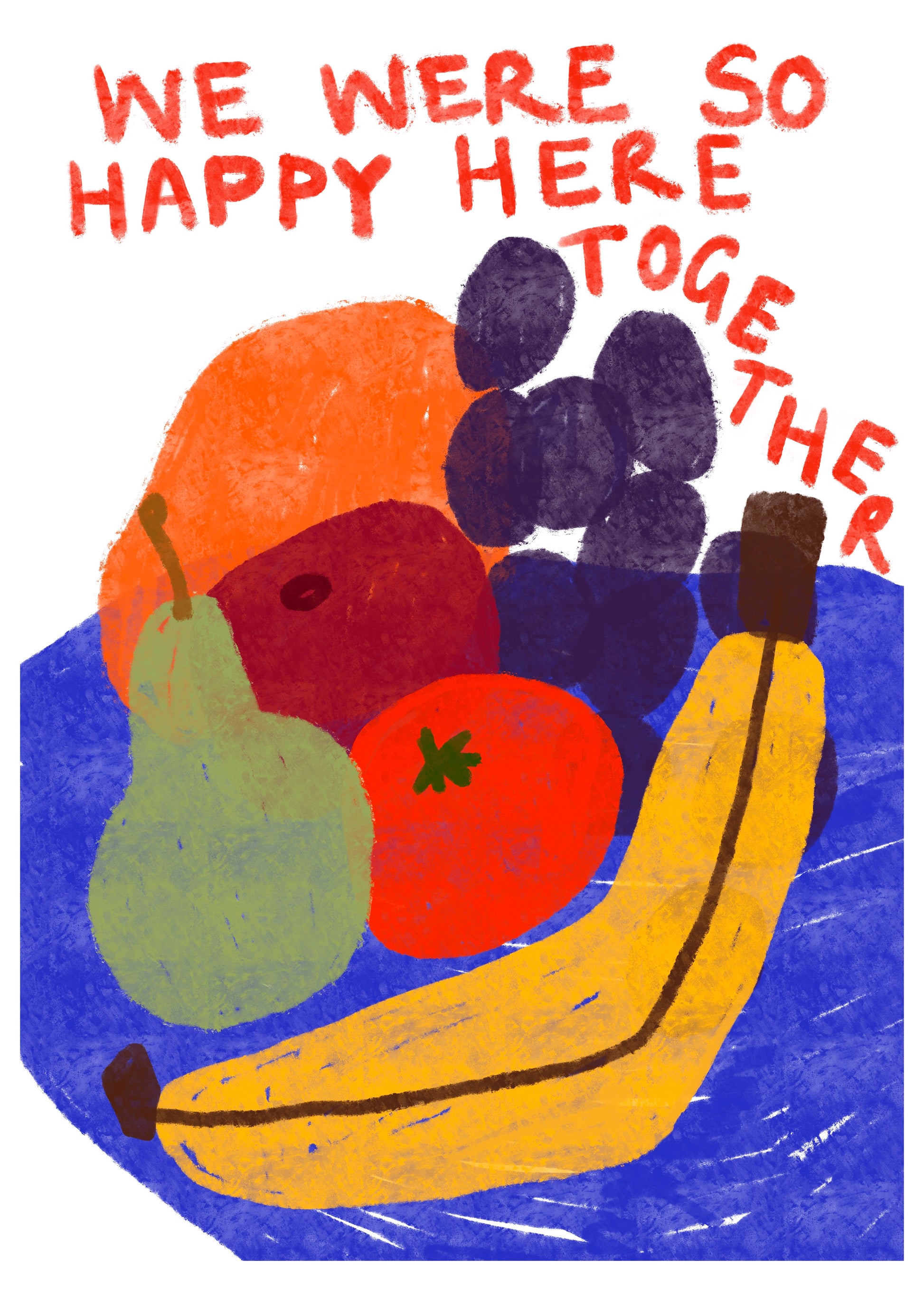 ‘We Were So Happy’ digitally illustrated art print. Available in sizes A5–A2.